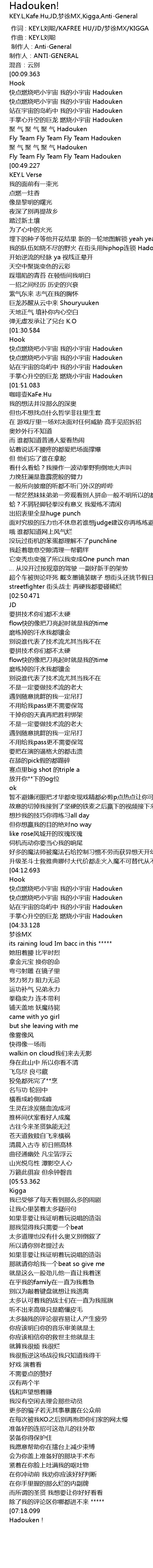 | [00:06.700] | 制作人:ANTI-GENERAL |