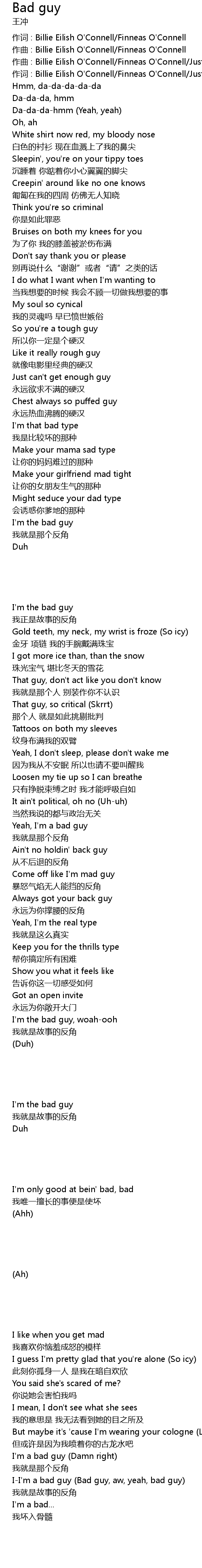 | I-I'm a bad guy (Bad guy, aw, yeah, bad guy) | |