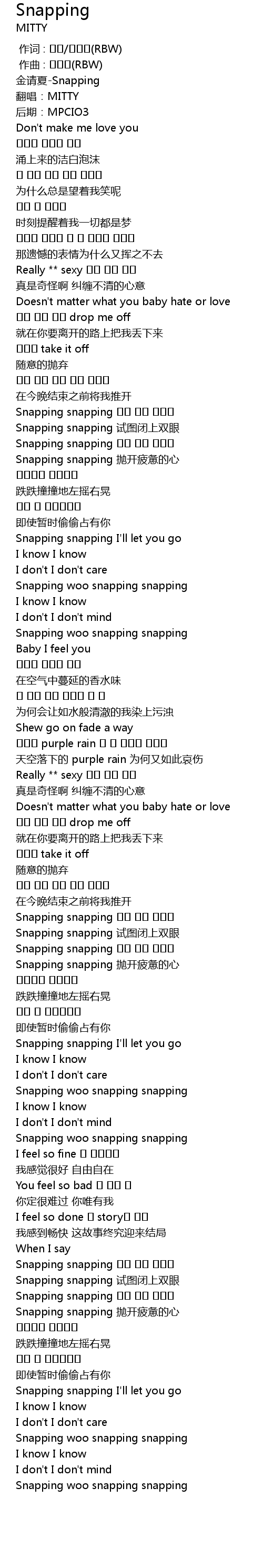 | [02:12.92] | Snapping snapping I' ll let you go |
