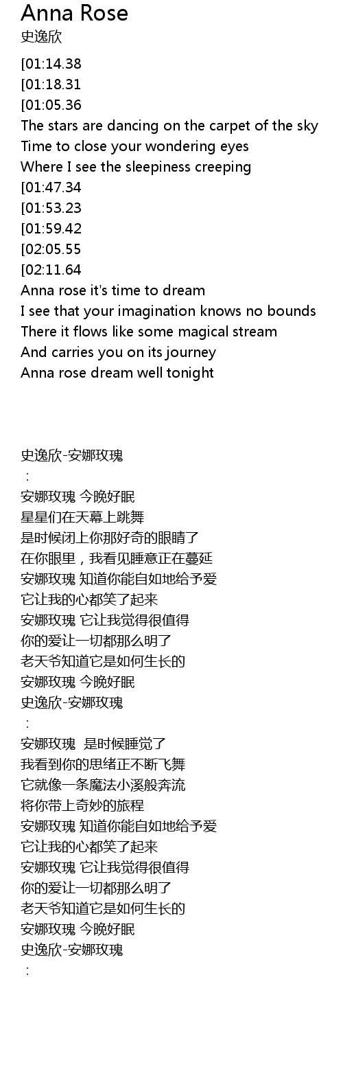 | [00:06.14][01:14.38][02:27.18] | shǐ yì xīn Anna rose |