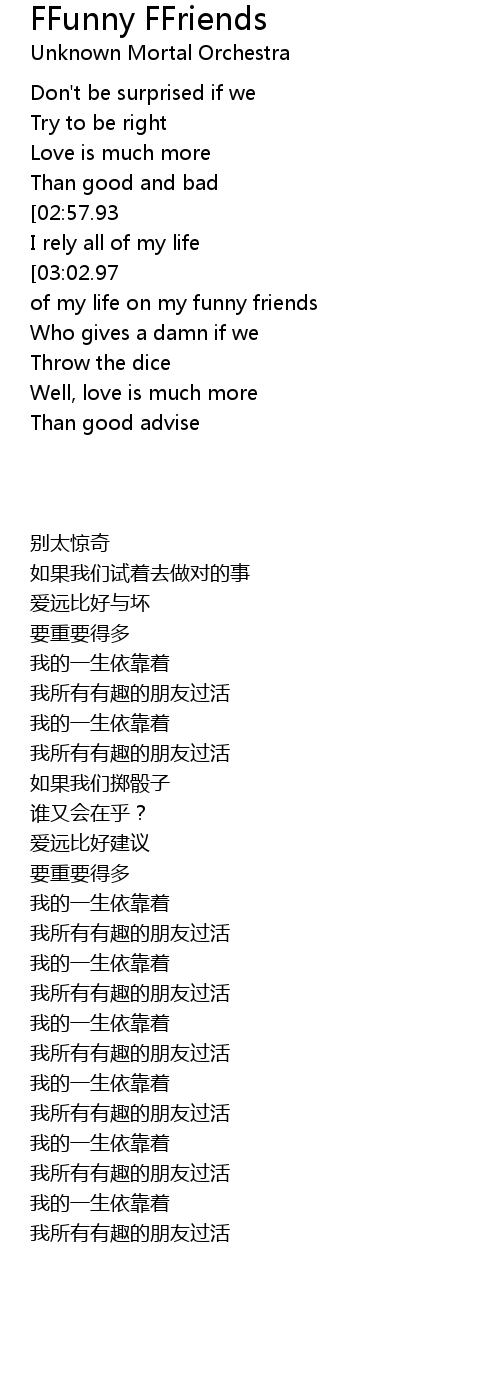 | [03:16.00][03:02.97][02:23.33][02:10.17][01:57.03][01:43.56][01:09.86][00:56.27] | All of my life on my funny friends |