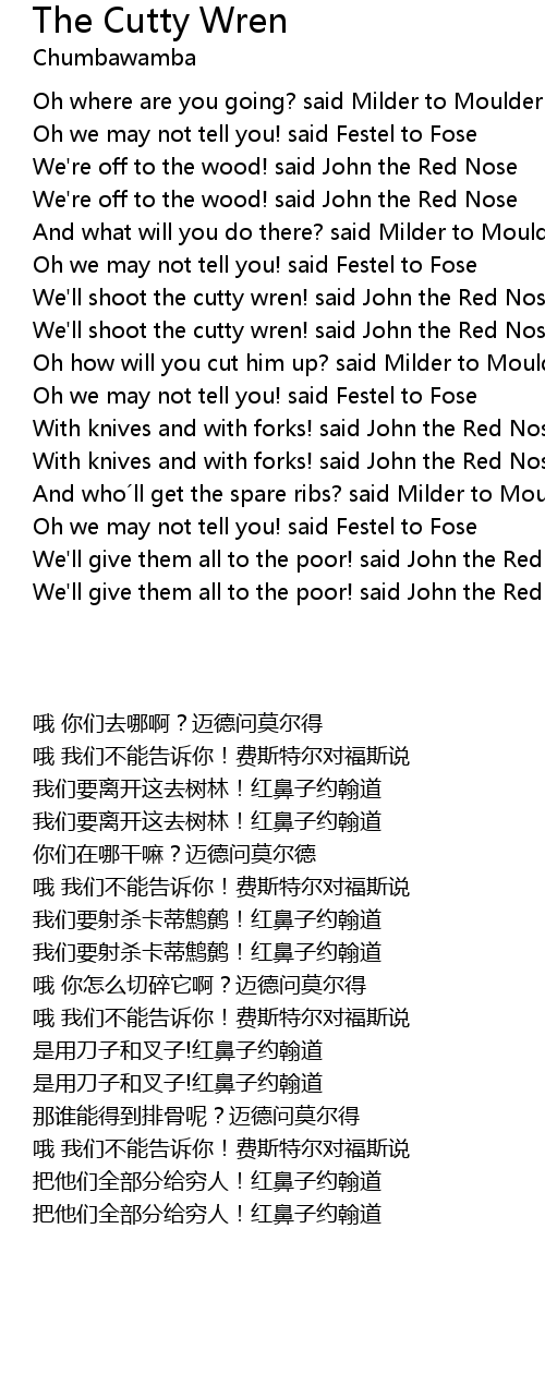 | [00:47.64] | We'll shoot the cutty wren! said John the Red Nose |