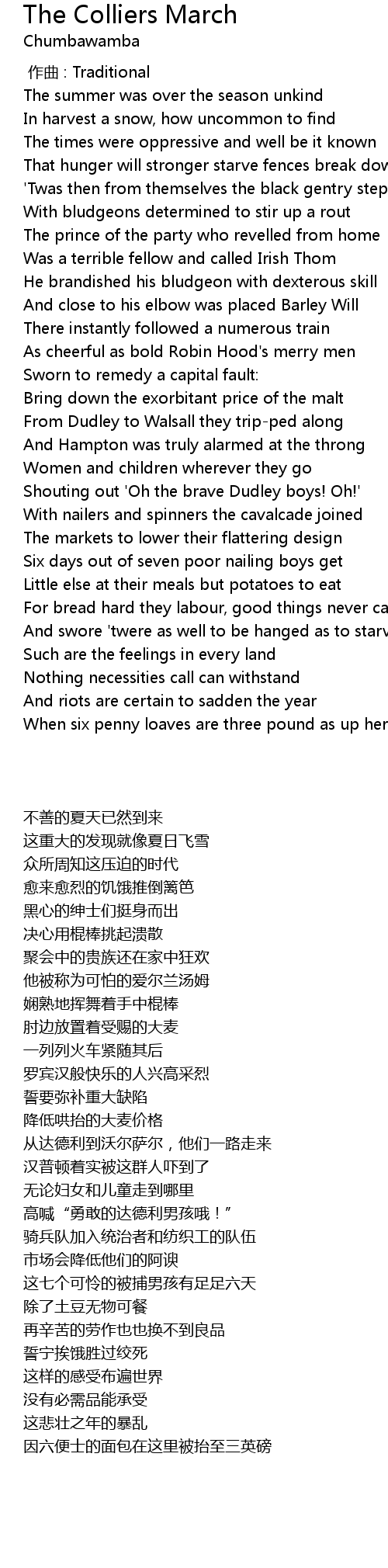 | Song | The Colliers March |