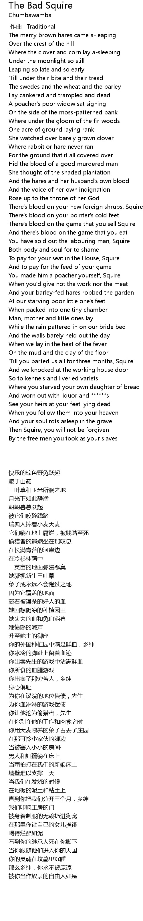 | [01:48.07] | There' s blood on the game that you sell Squire |