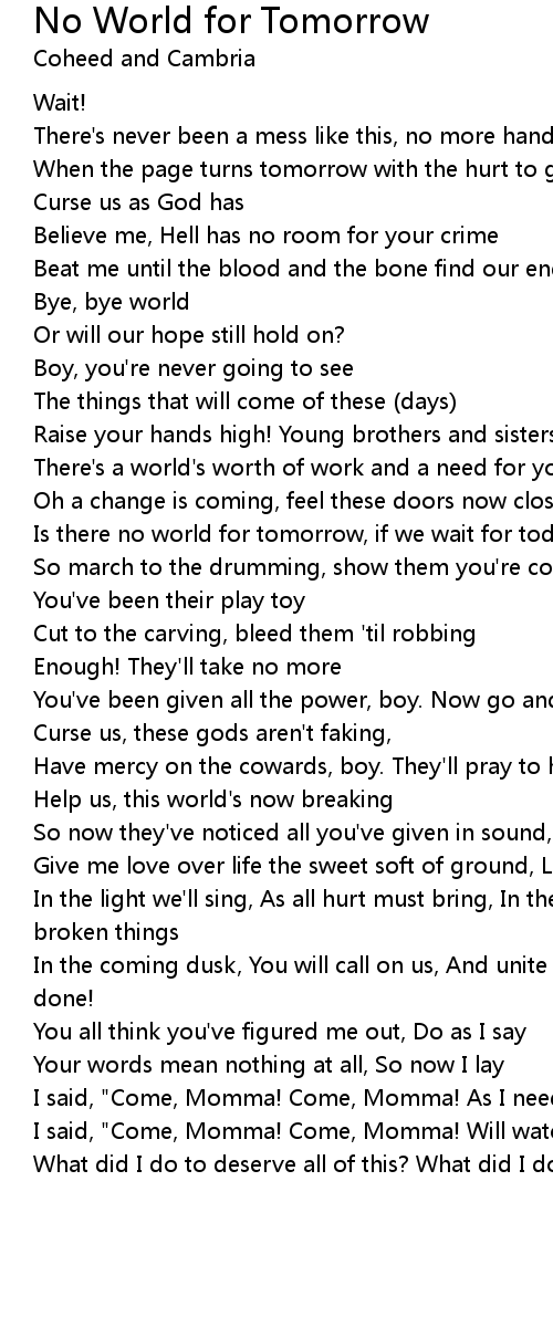 Is there no world for tomorrow, if we wait for today? |