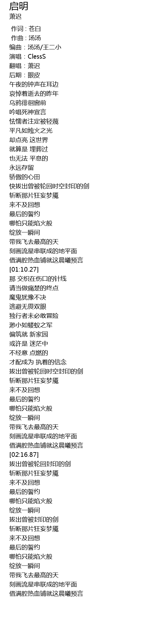 | [02:11.00] | 借满腔热血铺就这晨曦预言 |