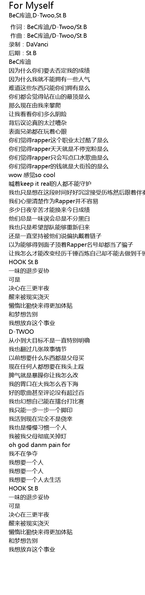 | [00:00.000] | 作词 : BeC库迪/D-Twoo/St.B |