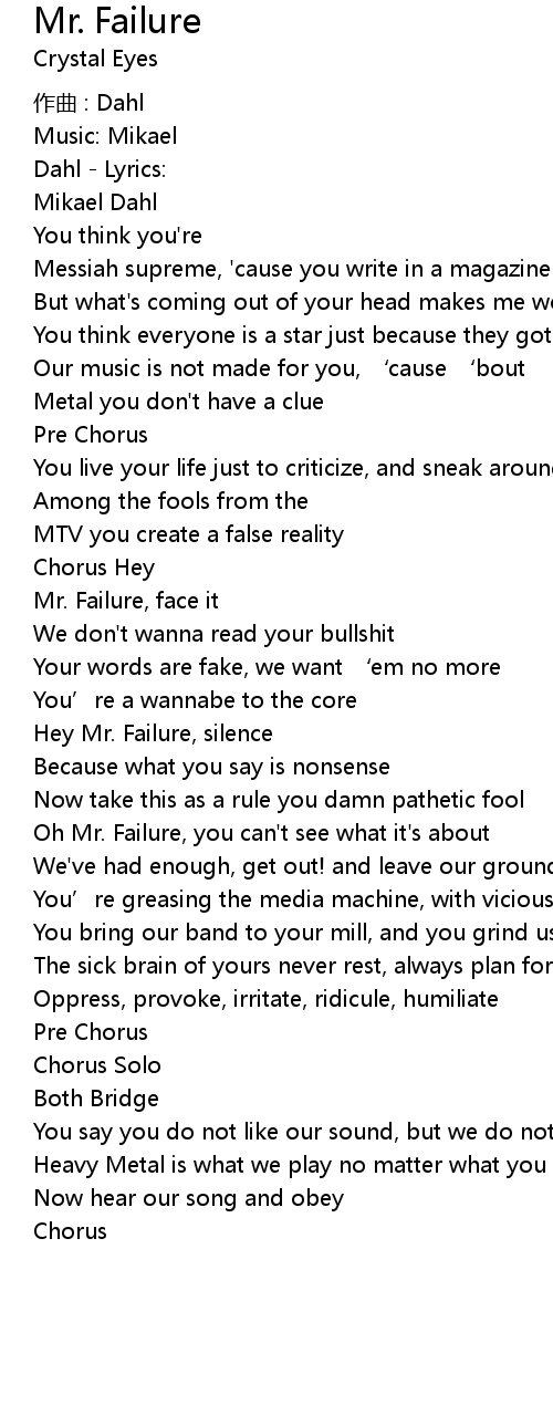 | Song | Mr. Failure |