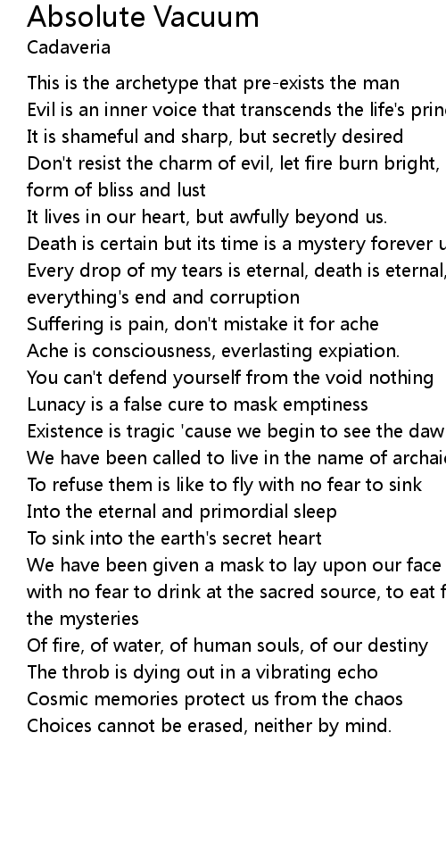 Every drop of my tears is eternal, death is eternal, it's the evidence of everything's end and corruption |