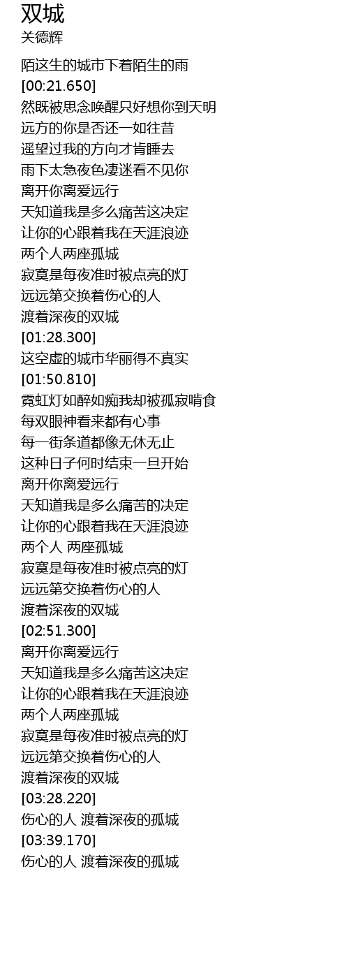| [03:42.780] | 伤心的人 渡着深夜的孤城 |