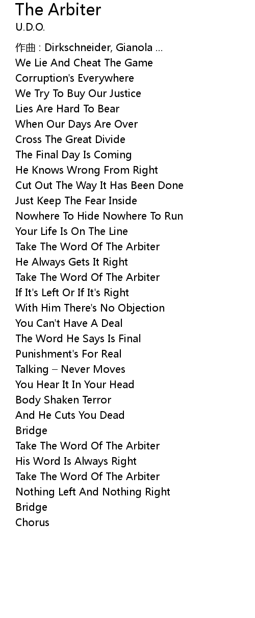 | Take The Word Of The Arbiter | |