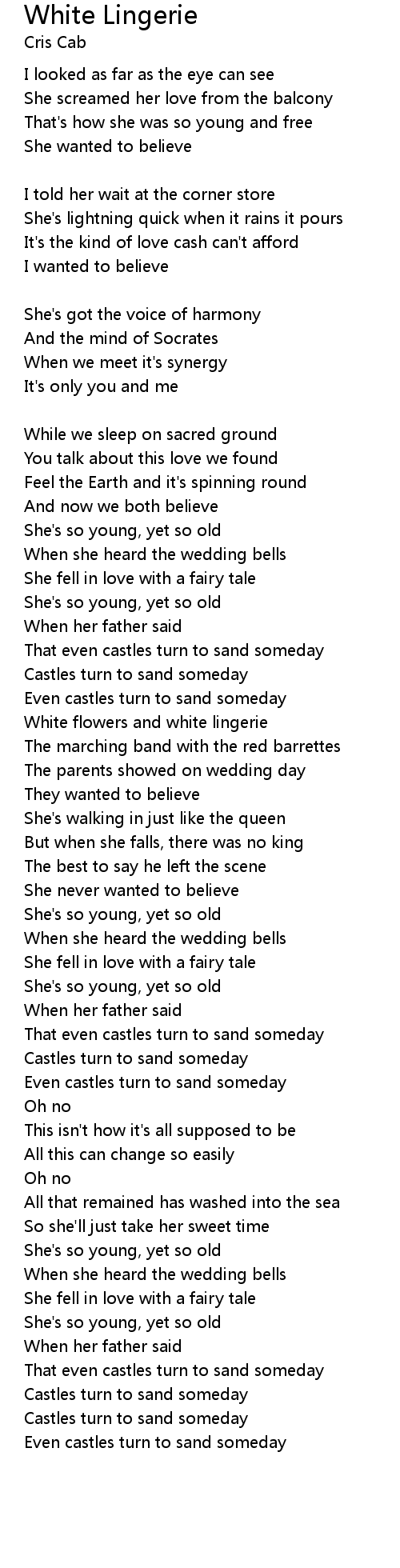 | That even castles turn to sand someday | |