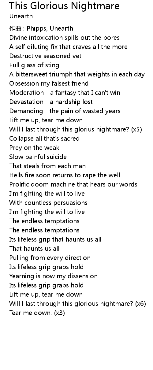 | Will I last through this glorius nightmare? x5 | |