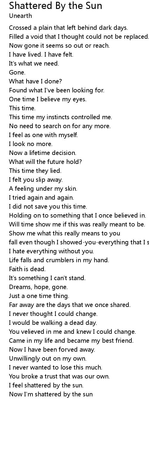Now I'm shattered by the sun |