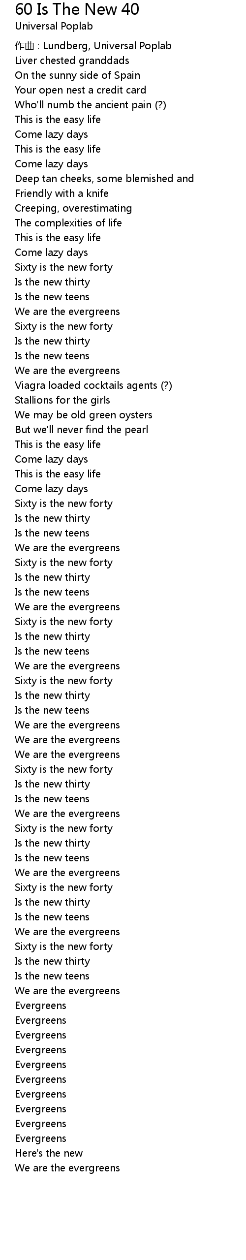 | Song | 60 Is The New 40 |