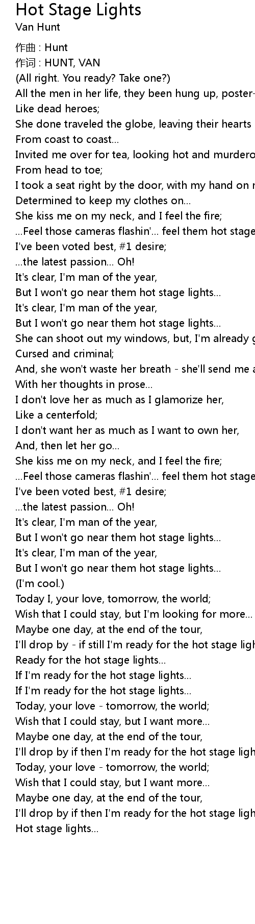 | Song | Hot Stage Lights |