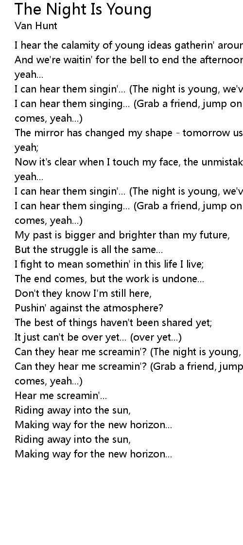 I can hear them singin'... (The night is young, we've only just begun, yeah...) |
