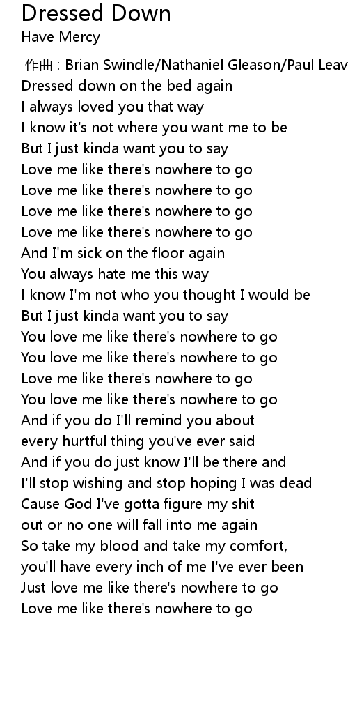 | [00:47.90] | Love me like there' s nowhere to go |