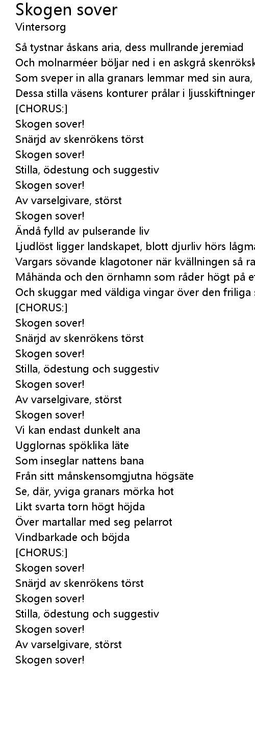 | Ljudl st ligger landskapet, blott djurliv h rs l gm lt andas | |