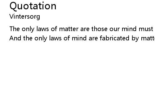 The only laws of matter are those our mind must fabricate,