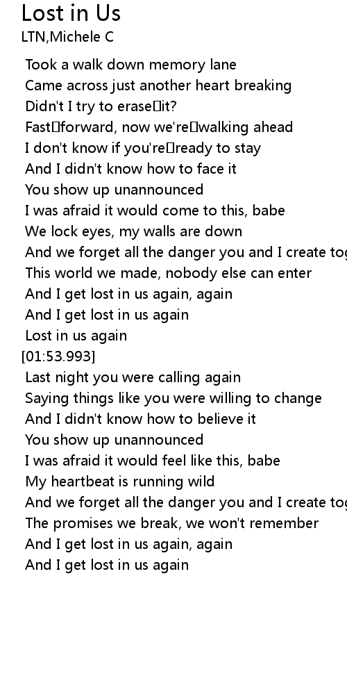 | [01:31.416] | And I get lost in us again, again |