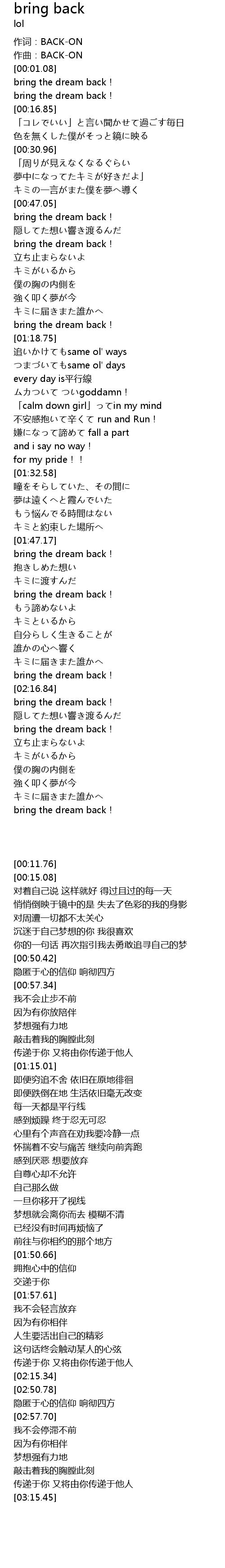 | [00:40.75] | キミの一言がまた僕を夢へ導く |