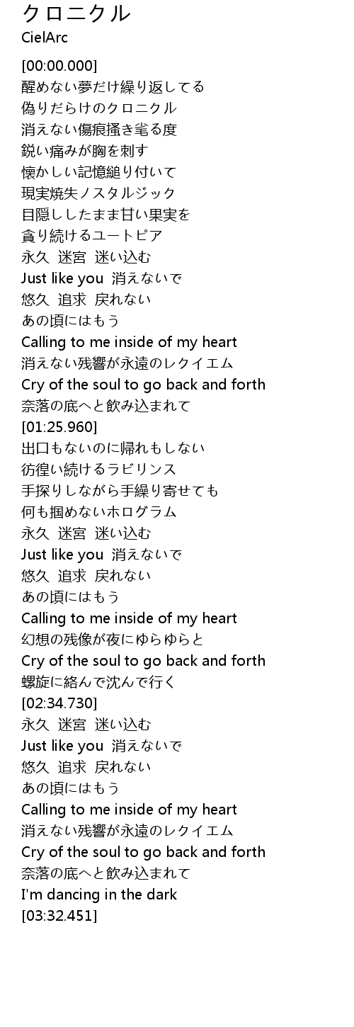 | [03:22.160] | 奈落の底へと飲み込まれて |