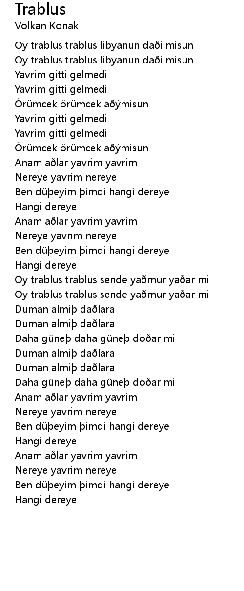 | Oy trablus trablus sende yaðmur yaðar mi | |
