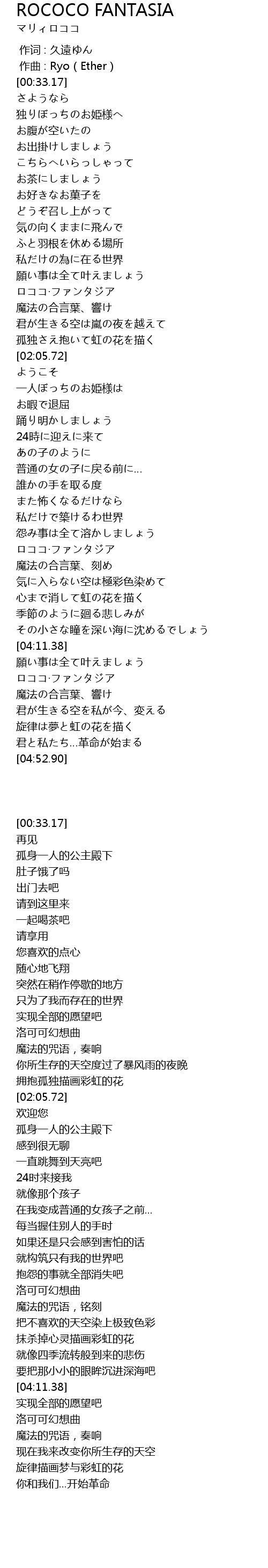 | [00:01.00] | 作曲 : Ryo(Ether) |