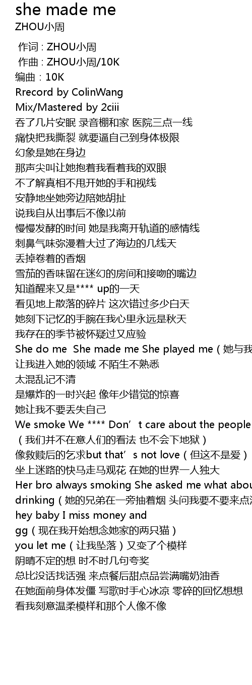 | [02:33.772] | She do me She made me She played me(她与我尽欢) |