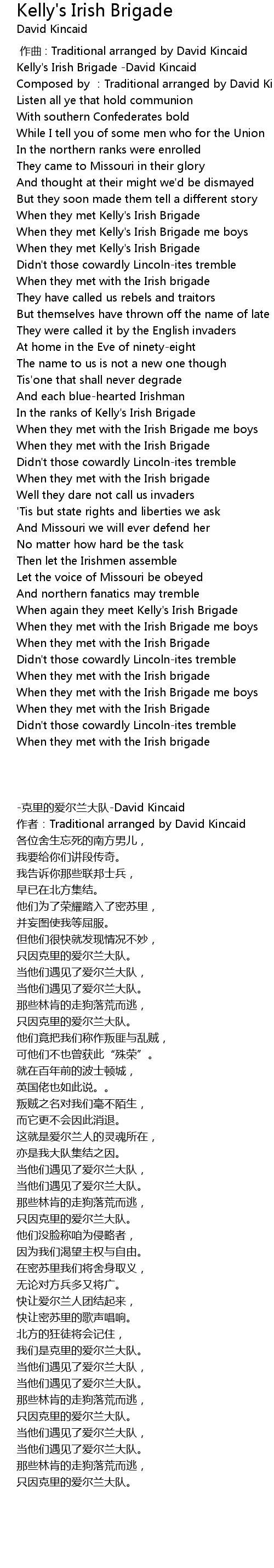 | [00:00.00] | Kelly' s Irish Brigade David Kincaid |