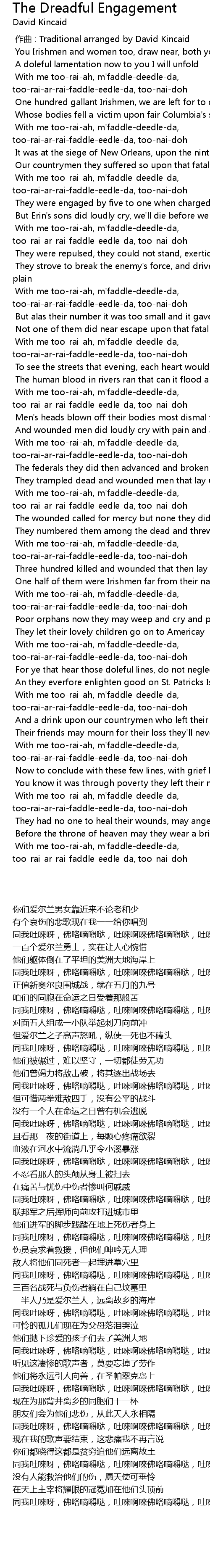 | [00:01.334] | You Irishmen and women too, draw near, both young and old |