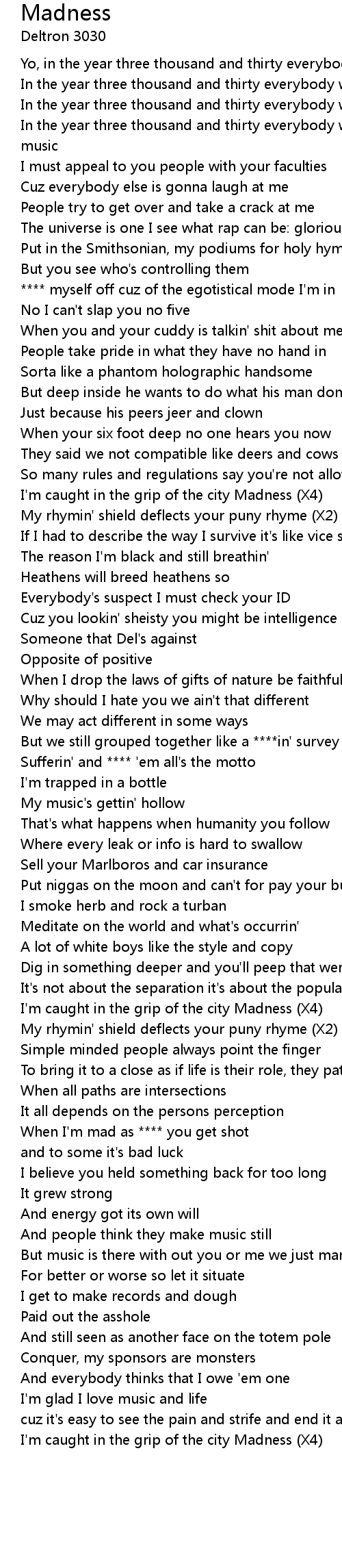 I'm caught in the grip of the city Madness (X4) |