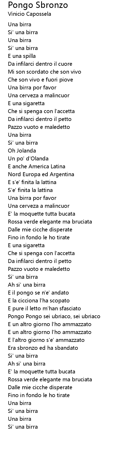 Pongo Sbronzo Lyrics