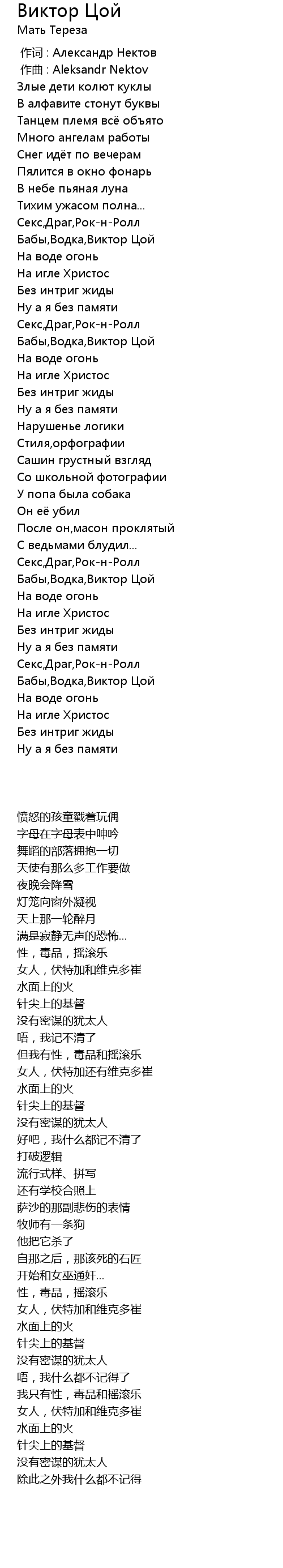 | [01:19.88] | Бабы,Водка,Виктор Цой |