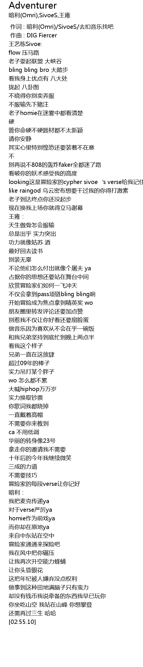 | [02:21.74] | 冒险家的每段verse让你记好 |