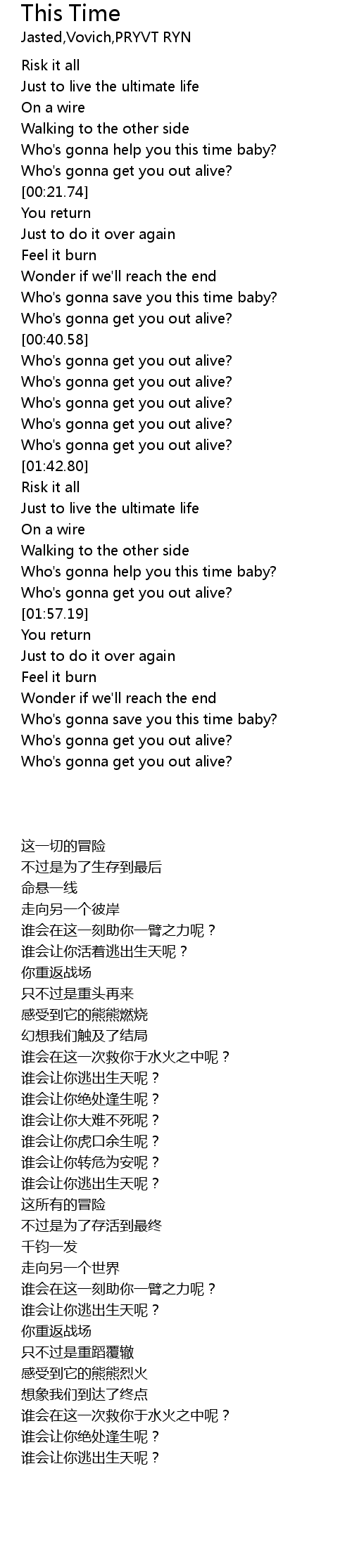 | [00:50.45] | Who's gonna get you out alive? |