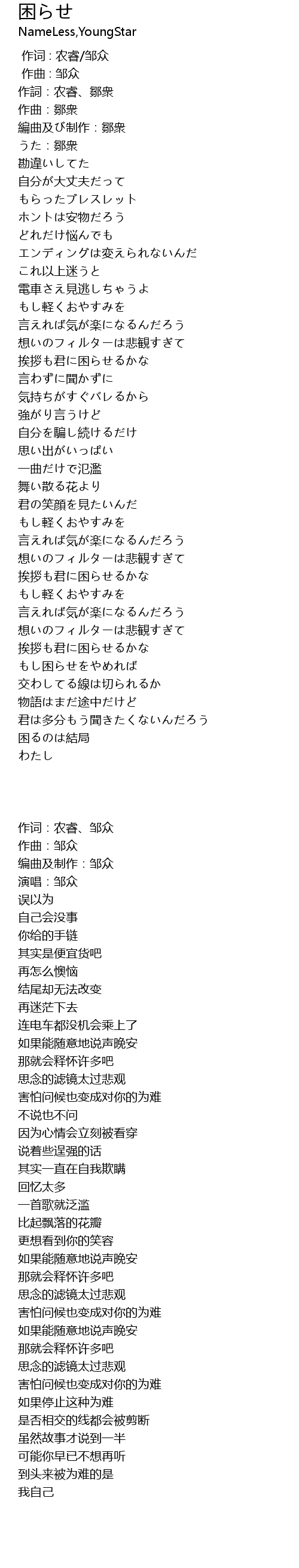 | [00:07.993] | 編曲及び制作:鄒衆 |