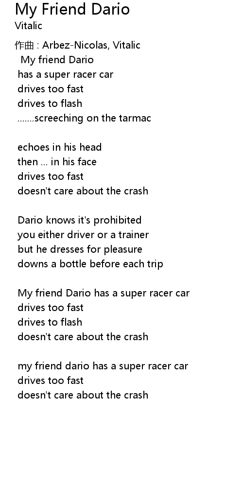 | my friend dario has a super racer car | |