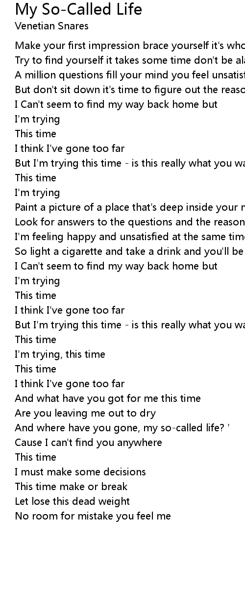 And where have you gone, my so-called life? ' |