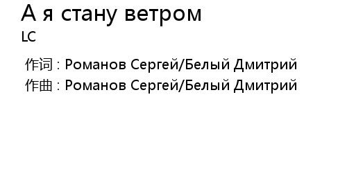 | [00:00.00-1] | 作曲 : Романов Сергей/Белый Дмитрий |