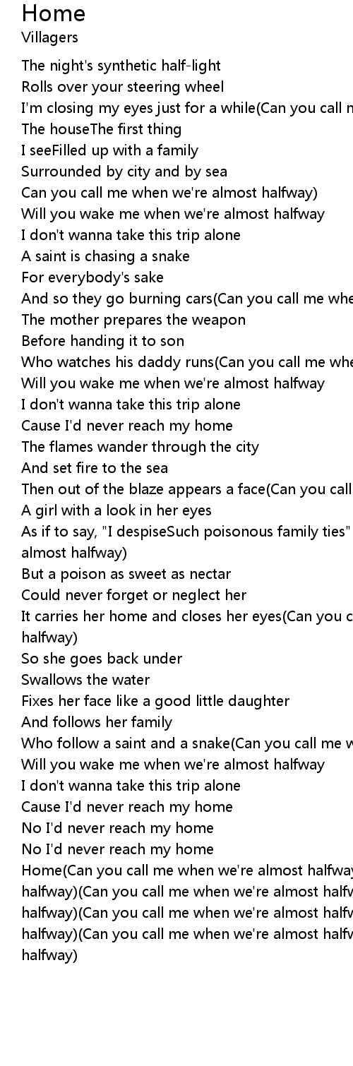 Home(Can you call me when we're almost halfway)(Wake me when we're almost halfway)(Can you call me when we're almost halfway)(Wake me when we're almost halfway)(Can you call me when we're almost halfway)(Wake me when we're almost halfway)(Can you call me when we're almost halfway)(Wake me when we're almost halfway) |