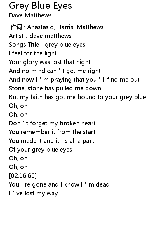 | [01:07.44] | But my faith has got me bound to your grey blue eyes |