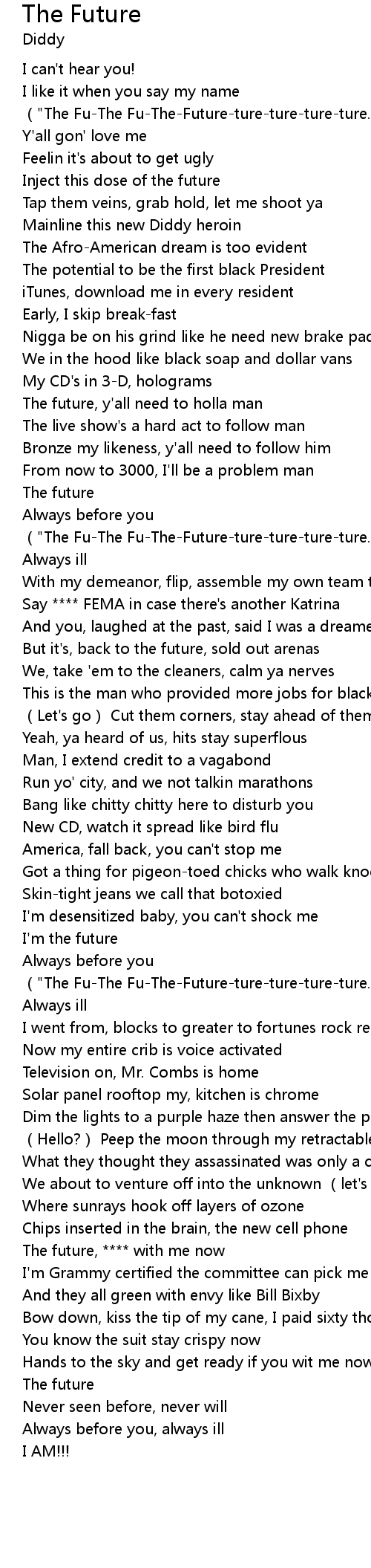 | [00:55.92] | The future, y' all need to holla man |