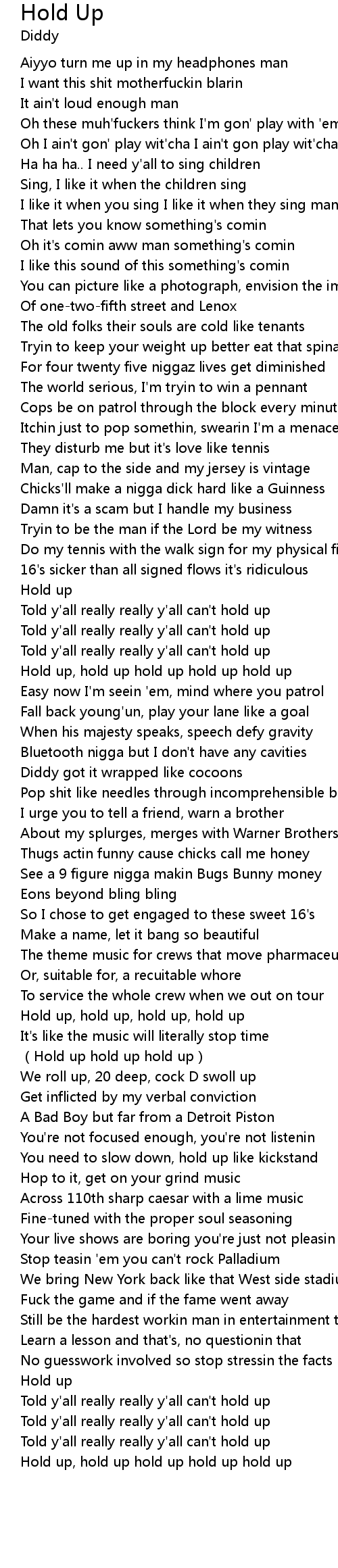 | [01:20.87] | Hold up, hold up hold up hold up hold up |