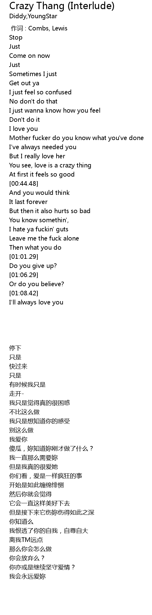| [00:35.92] | You see, love is a crazy thing |