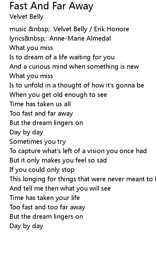 Too fast and far away |