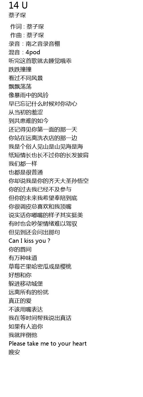 | [00:00.00] | 作词 : 蔡子琛 |