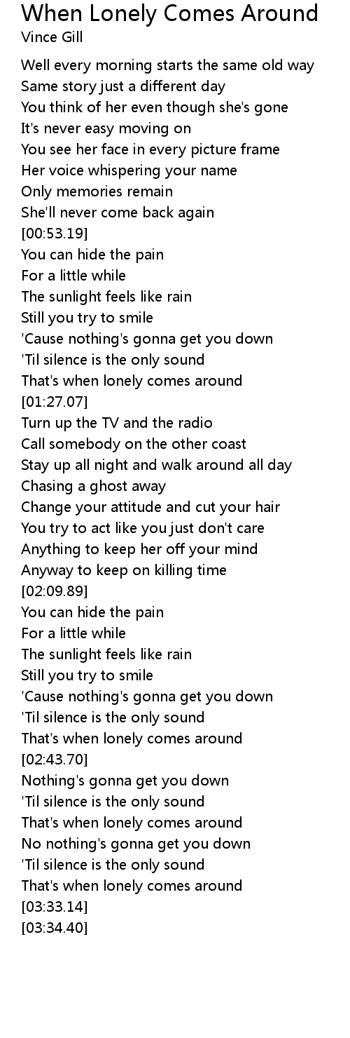 That's when lonely comes around |