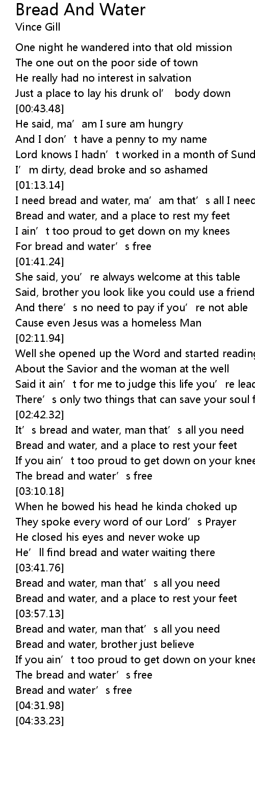 | [03:43.35] | Bread and water, man that' s all you need |